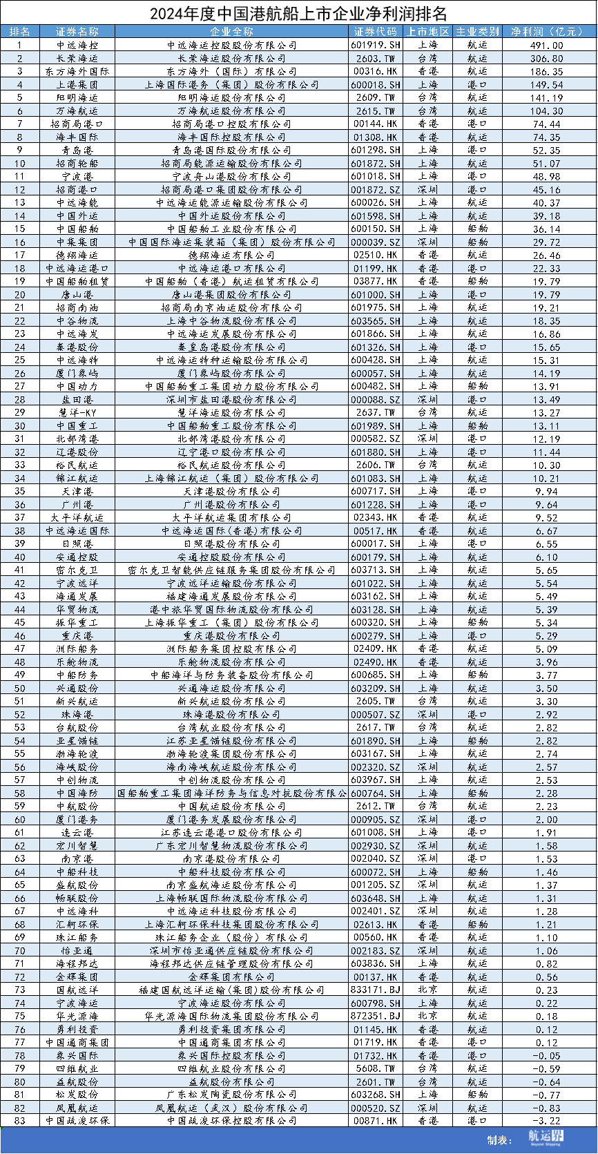 本次上榜企業數量為83家,較之前有所變動,詳情為:首先是剔除2家企業,華榮能源(01101HK)停牌,ST錦港(600190SH)暫未公開財報數據,從榜單中剔除。其次是新增3家企業,匯舸環保(02613HK)、德翔海運(02510HK)、松發股份(603268SH)主營業務與航運運輸相關,將其納入。