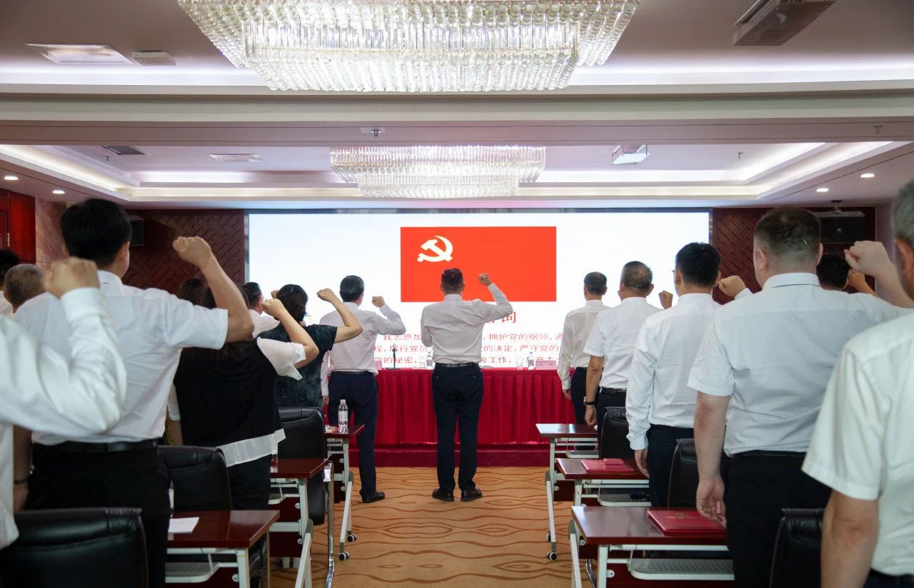 面向鮮紅的黨旗,全體黨員舉起右拳,重溫入黨誓詞,鏗鏘誓言在會場激蕩,宣示始終牢記自己的身份和責(zé)任,時時處處發(fā)揮先鋒模范作用。