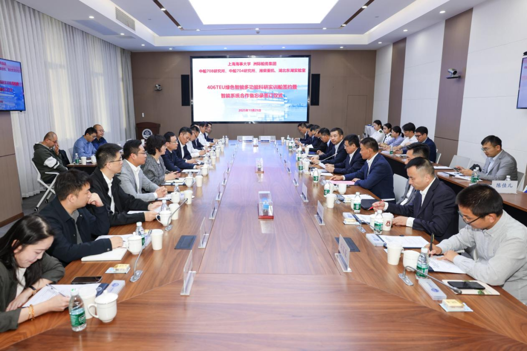 10月25日,洲際船務與上海海事大學在臨港校區簽署“綠色智能多功能科研實訓船”(簡稱“科研實訓船”)協議,并聯合多家單位簽訂科研實訓船智能系統合作備忘錄。上海海事大學校黨委書記宋寶儒、洲際船務集團董事長郭金魁、中國船舶集團第七〇八研究所總工程師黃蔚、中國船舶集團第七〇四研究所產業發展部主任朱曉清、東湖實驗室綠色交通創新中心副主任鄧芳、濰柴集團總經理助理尹曉青等嘉賓出席,簽約儀式由上海海事大學校黨委副書記兼副校長李志鵬主持。