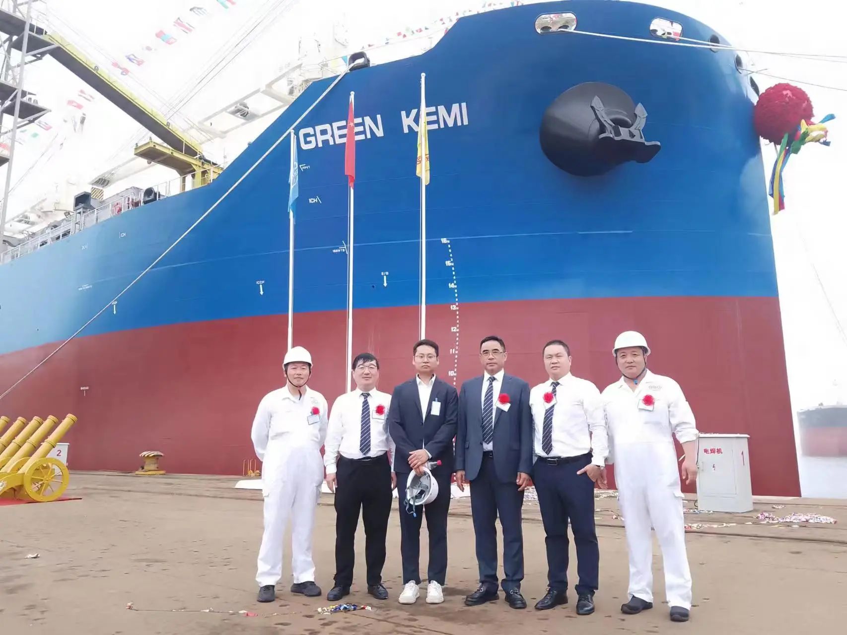 7月12日,全球最大的冰級多用途紙漿船68000噸“GREEN KEMI”輪在大連交付中遠(yuǎn)海運(yùn)特運(yùn)運(yùn)營。招銀金租、招商銀行大連分行、洲際船務(wù)集團(tuán)、中國船級社大連分社、上海船舶研究設(shè)計院、中遠(yuǎn)海運(yùn)特運(yùn)、中遠(yuǎn)海運(yùn)重工等相關(guān)單位的領(lǐng)導(dǎo)和嘉賓出席了交船儀式。許麗華女士為新船命名。