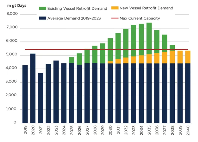 預計到2035年,主要造船廠的產能將溫和增加約5%。由于造船需求的增加,預計印度、中東、菲律賓和越南將出現新的造船廠。