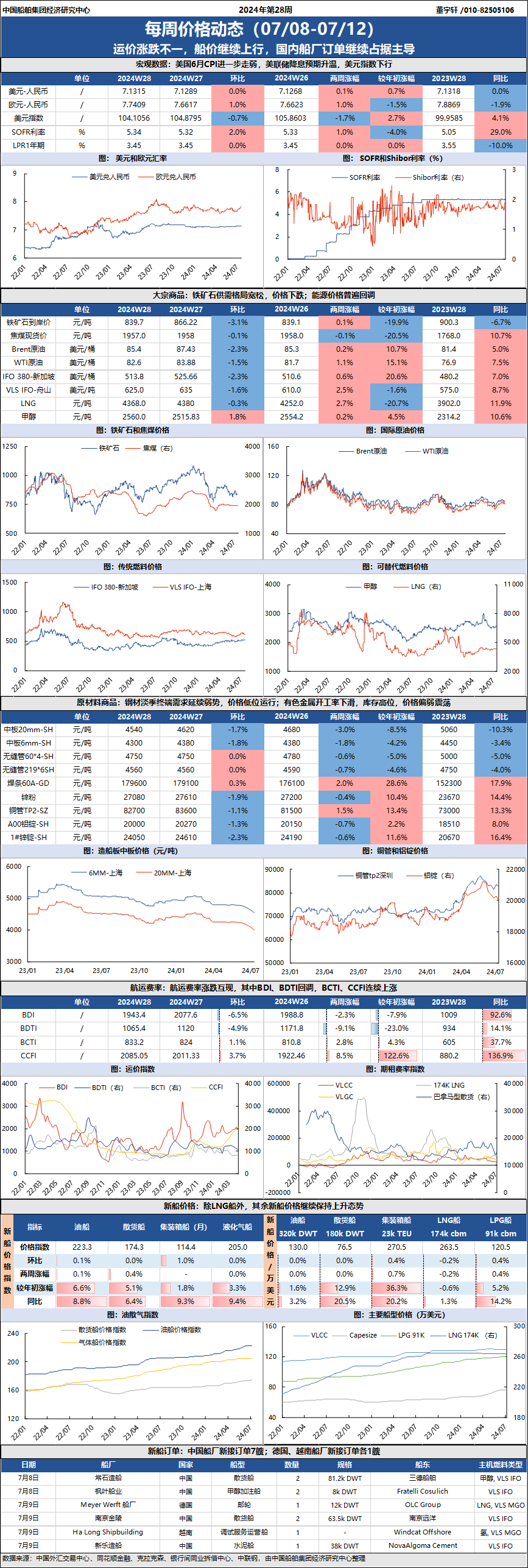 站在歷史新起點,為幫助關心船舶工業發展的各界人士及時掌握行業發展動向,中國船舶集團經濟研究中心依托豐富的行業數據資源,將定期發布涵蓋宏觀環境、大宗商品價格、原材料價格、航運費率、新船價格、新船訂單等方面數據信息的“每周價格動態”。通過數據與統計圖表等形式,詳細解構行業趨勢,幫助您把握市場脈搏。
