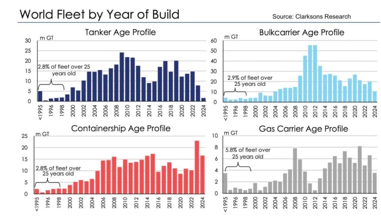 Xclusiv分析師在最新周報中指出:“這一老齡化船隊帶來了諸多問題,從運營效率到環境可持續性都面臨挑戰。”他們質疑,全球商船隊中有多少能夠滿足國際海事組織為2030年設定的綠色環保目標。