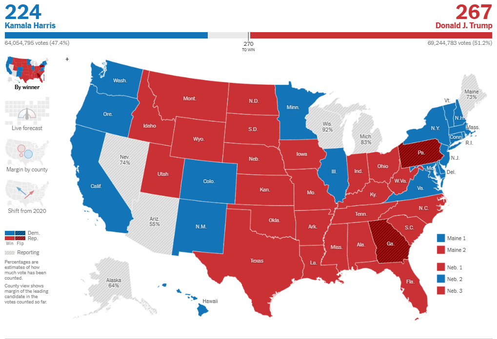 轟轟烈烈的2024年美國大選終于在今天揭曉。據新華社消息,美國媒體測算,共和黨總統候選人特朗普已獲得至少270張選舉人票,鎖定2024年總統選舉勝局。