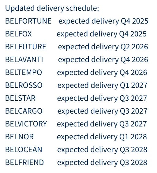 資料顯示,Belship擁有一支現代化的船隊,由42艘平均船齡為3年的Ultramax型散貨船組成。該公司還計劃在2025年至2028年間接收12艘新造船。