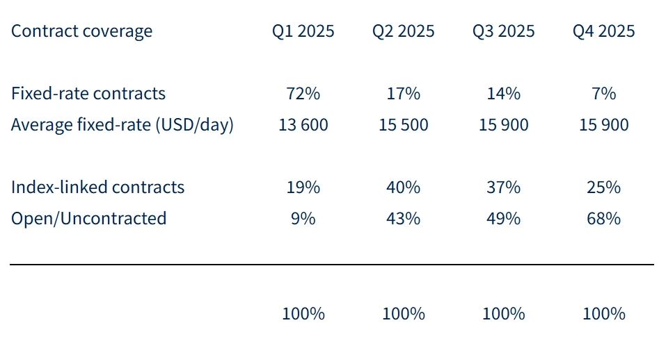 Belship指出,凈利潤下降的部分原因是本季度有三艘船舶停航維修,以及Ultramax型散貨船市場日租金下降。第四季度,Ultramax型船波羅的海指數降至每天13,865美元,而前一季度為每天16,591美元,“Ultramax型船現貨市場日租金在新的一年里也顯示出疲軟趨勢,但預計到2025年第二季度將再次改善。”