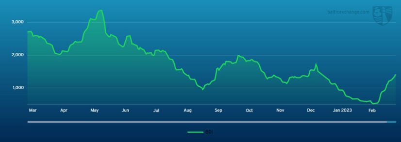 自2月16日在530點(diǎn)觸底后,BDI便開啟了連漲模式,截至3月9日,漲幅已超過(guò)150%。