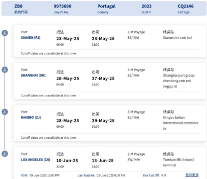 然而,根據(jù)ZIM最新的船期表,“Colorado”輪將于5月23日從廈門(mén)出發(fā)而重新啟動(dòng),與之前的ZX2相比,一個(gè)變化是在上海前加掛了廈門(mén)。