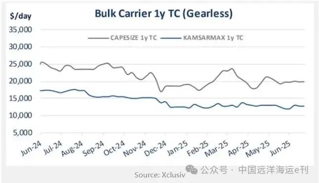 Xclusiv總結(jié)稱,當(dāng)前趨勢表明,受中國鋼鐵需求走弱及鐵礦石運量下滑影響,好望角型船運力面臨明顯疲軟,進而對干散貨市場中最大的細分板塊形成運價下行壓力。而鋼鐵需求季節(jié)性復(fù)蘇乏力疊加貿(mào)易壁壘導(dǎo)致的出口風(fēng)險上升,進一步加劇了這一壓力。與此同時,中型散貨船或?qū)⑹芤嬗诿禾抠Q(mào)易結(jié)構(gòu)的調(diào)整。盡管印尼出口量減少,但蒙古和南非高熱值煤炭運量的增加,將推升噸海里需求。