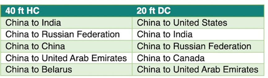 以下是截至2023年8月10日,xChange Insights上40HC和20DC需求最大的5條航線。
