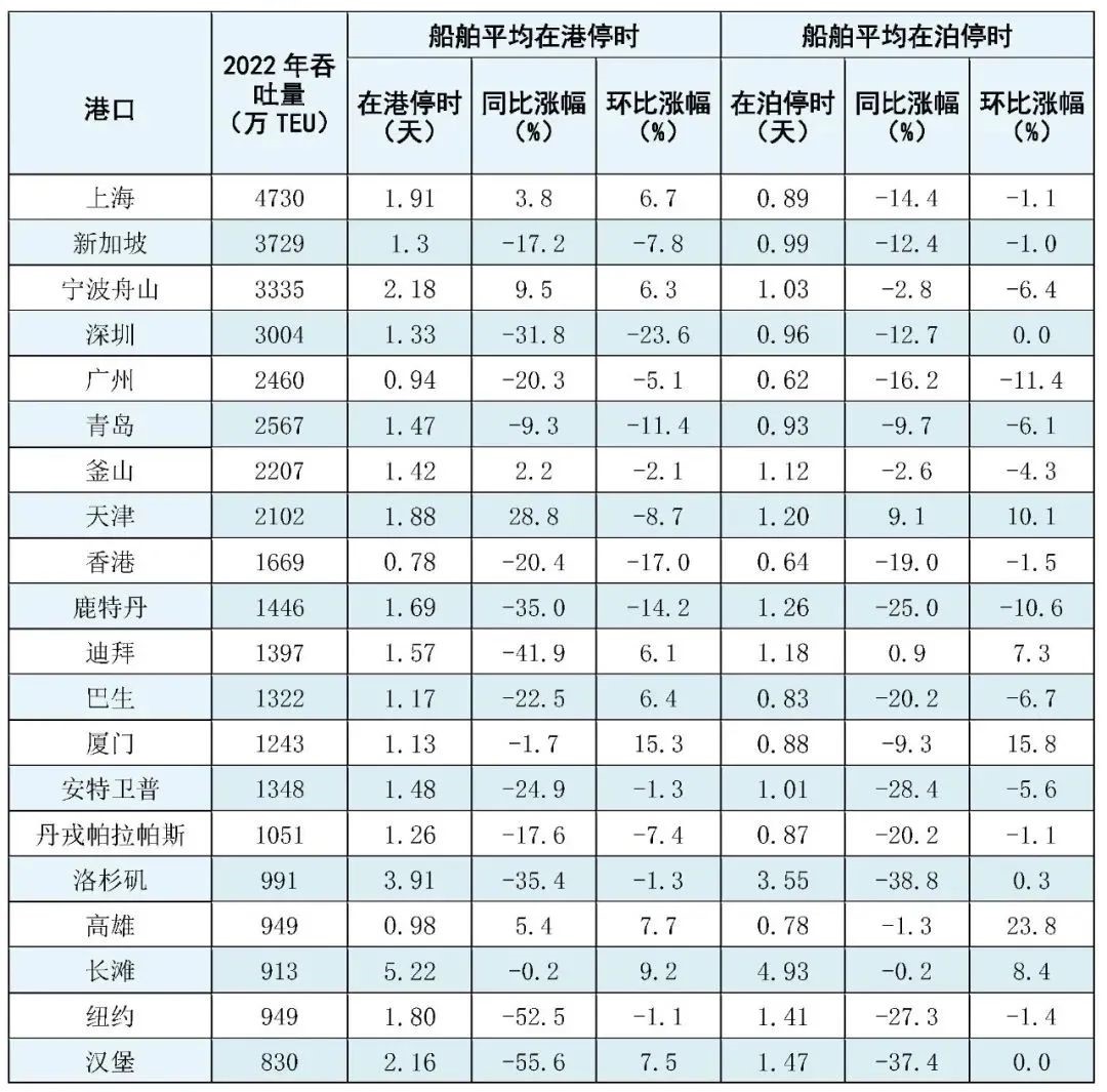 8月全球主要港口船舶平均在港、在泊時(shí)間公布