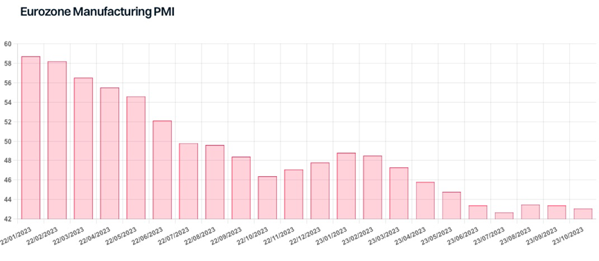 根據Gibson的說法,“10月歐元區制造業PMI最新數據為43.1,較9月的43.4進一步下降,數據表明該地區經濟活動收縮。工業生產疲軟疊加消費者情緒惡化,這是一個明顯的跡象,表明歐洲需求可能在2024年仍面臨壓力。IEA的最新數據顯示,經合組織歐洲汽油需求在第三季度下降了40萬桶/天,而整個2023年的總體需求預計將下降10萬桶/天,隨后在2024年進一步下降9萬桶/天。其中降幅最大的是德國,其需求同比下降13萬桶/天,同比下降12.9%。鑒于德國是該地區最大的經濟體,擁有龐大的工業和石化部門,歐洲的前景越來越黯淡”。