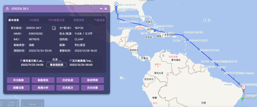 ▲“Green Sky ”輪航行軌跡。圖源:寶船網(wǎng)