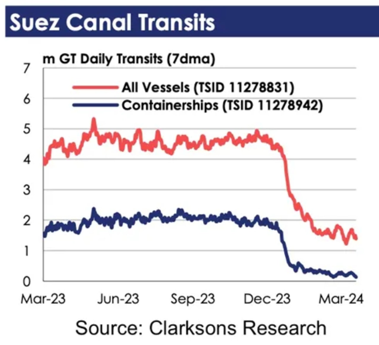 在過去的112天(16周)里,主要的集裝箱航運公司已經避開了蘇伊士運河航線,轉而進在好望角周圍進行更安全、更長的航行。Vespucci Maritime 的數據表明,這增加了約 650萬公里的額外航程。