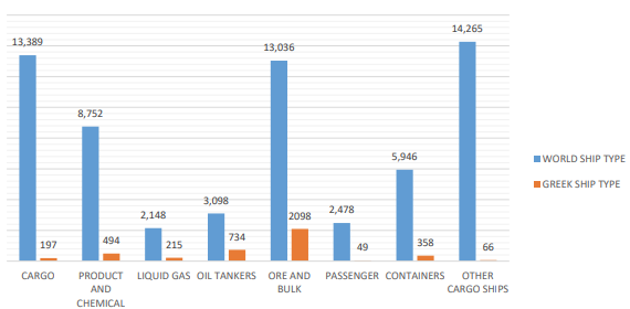 世界船隊與希臘控制船隊的船型和數(shù)量比較