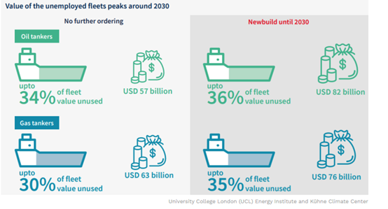 根據倫敦大學學院(UCL)能源研究所和庫納氣候中心(Energy Institute and Kühne Climate Center)的分析,如果全球化石燃料消耗的減少與2050年全球溫控目標一致,油輪船隊或面臨重大挑戰。