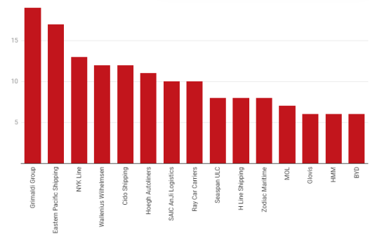 其中,下單最多的包括義大利Grimaldi集團(19艘)、新加坡東洋航運公司(17艘)、日本郵船(13艘)和挪威Wallenius Wilhelmsen公司(12艘)。