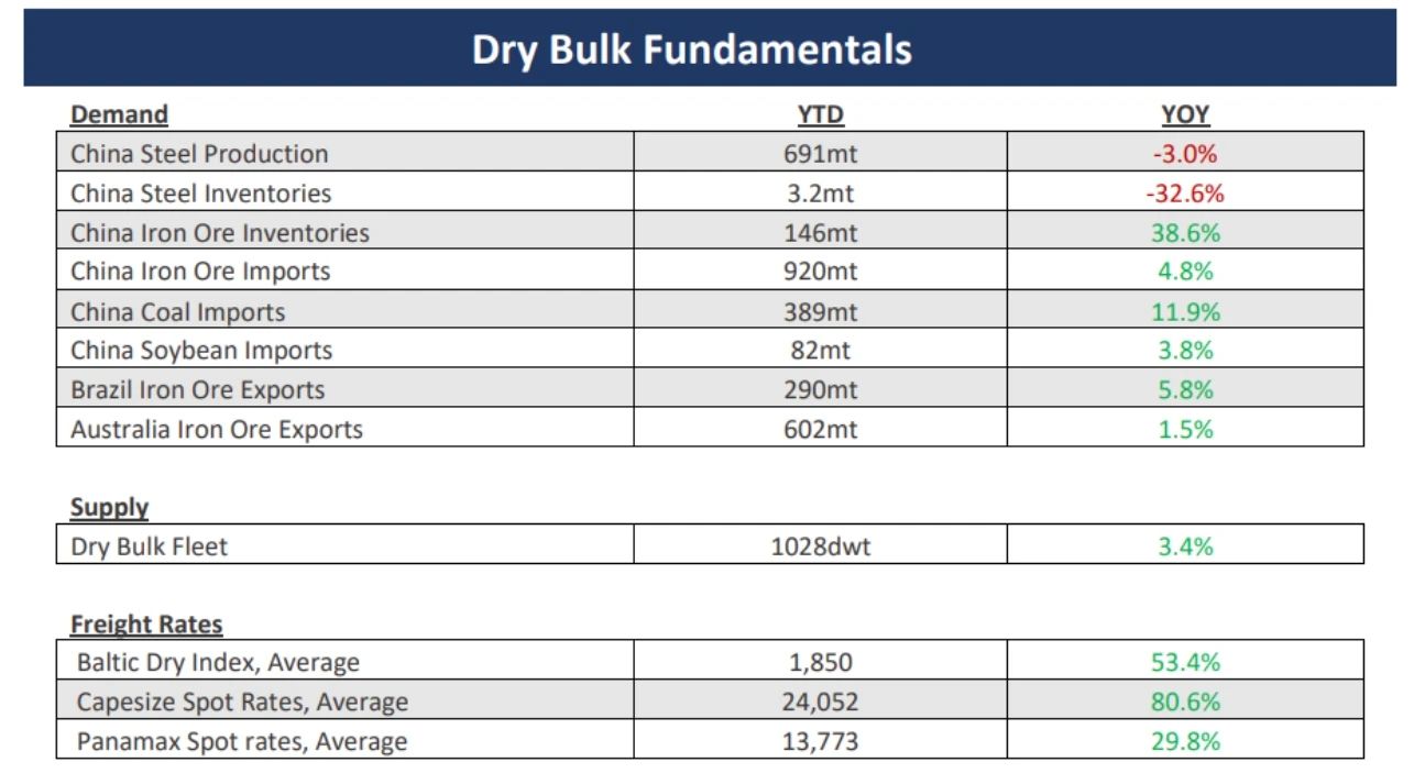 這一消息對於散貨航運業無疑是一個積極信號,尤其是第四季度中國國內生產總值(GDP)的增長預期。據克拉克森證券研究,中國GDP每增長1%,全球幹散貨貿易量通常會相應增長0.5%。