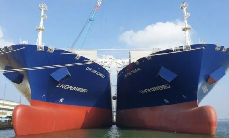 達(dá)飛輪船(CMA CGM)是十大班輪公司中少有的近期未在船廠訂購新船的公司。其最新的新造船訂單是7月份由HD現(xiàn)代重工公佈的,價(jià)值高達(dá)26.7億美元的12艘LNG雙燃料動(dòng)力的15,500標(biāo)準(zhǔn)箱船舶。據(jù)經(jīng)紀(jì)人透露,這些船舶為達(dá)飛輪船建造。這筆訂單將由HD現(xiàn)代重工和現(xiàn)代三湖重工共同承擔(dān),每家負(fù)責(zé)建造六艘,預(yù)計(jì)每艘新船將於2028年交付。