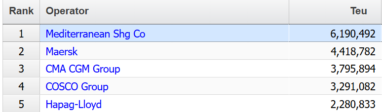 在五大班輪巨頭中,MSC是最大老齡集裝箱船船東。目前其旗下運(yùn)營315艘建造於2004年或更早的船舶。而馬士基雖然沒有足夠的新船訂單來替換老舊船舶,但已承諾未來五年內(nèi)更新80萬TEU運(yùn)力。