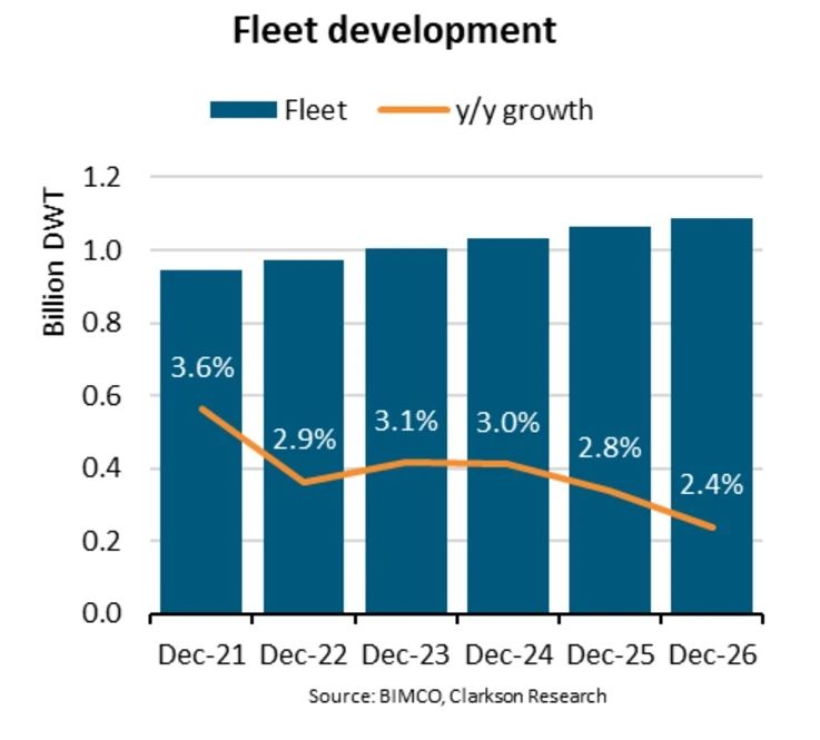 “但積極的一面是,訂單量較低可以支撐一段時(shí)間的市場(chǎng)上行。就目前的情況而言,我持謹(jǐn)慎樂(lè)觀態(tài)度,也因?yàn)槲覀儧](méi)有增加太多船隊(duì),幹散貨新船交付量不多,船隊(duì)也相對(duì)老舊。”