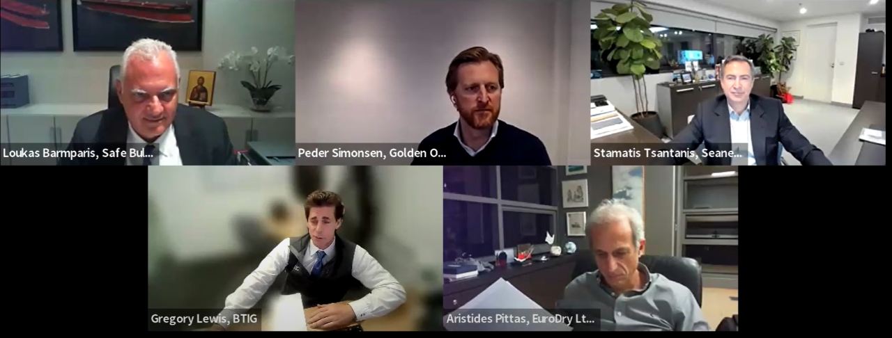 此次研討會由BTIG海事研究主管Gregory Lewis先生主持,彙聚了多位航運業重量級人物,包括EuroDry董事長兼首席執行官Aristeidis Pittas先生、Golden Ocean Group臨時首席執行官兼首席財務官Peder Simonsen先生、Safe Bulkers總裁Loukas Barmparis博士,以及Seanergy Maritime Holdings董事長兼首席執行官Stamatis Tsantanis先生。