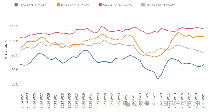 · 靈便型散貨船:自第13週末達到峰值以來,增長率有所放緩,表明本月下半月將進一步呈現(xiàn)下降趨勢。