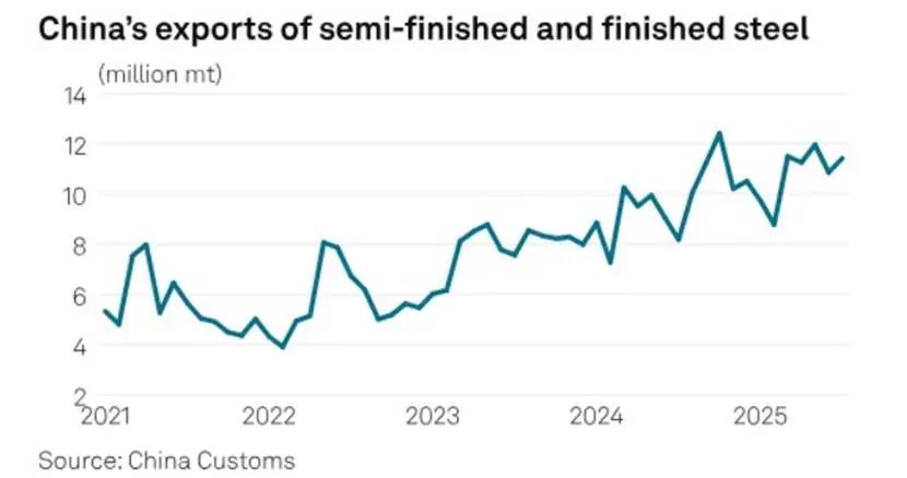 儘管普氏能源資訊相關人士預測,10月中國成品和半成品鋼材出口量或將顯著回落,但全年出口量仍有望超越2024年,創下歷史新高。