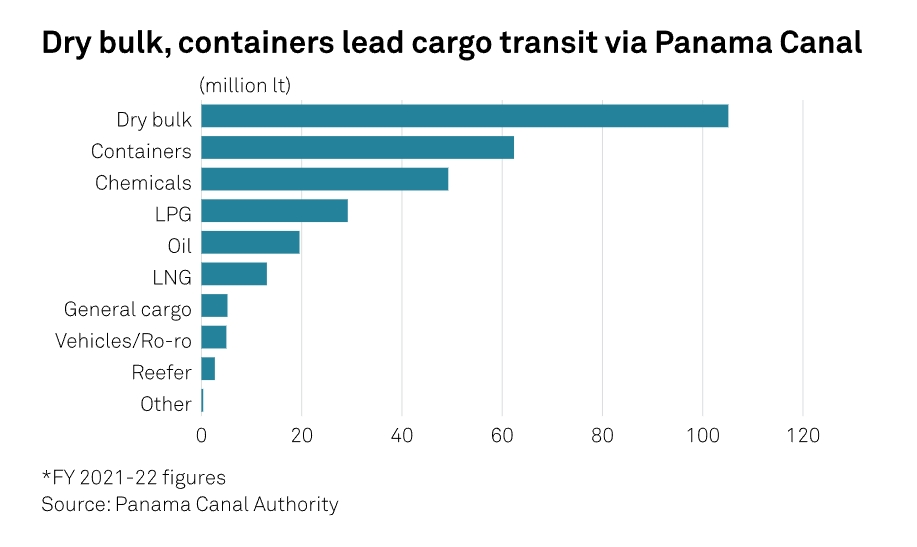 巴拿馬運河當局提供的資料顯示,在2022-23財年(10月至9月)(不包括小型船隻),通過該運河的商業運輸船舶為12,638艘次,低於2021-22財年創紀錄的13,003次。