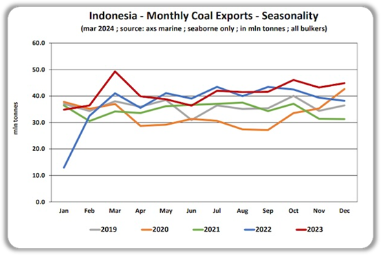印尼海運煤炭出口在 2023 年成為幹散貨市場的重要驅(qū)動因素,同比增長 10.2%。船舶經(jīng)紀(jì)公司 Banchero Costa 在最新週報中表示:“最近幾個月,全球煤炭貿(mào)易確實加快步伐,目前已完全恢復(fù)到疫情前水準(zhǔn)。”